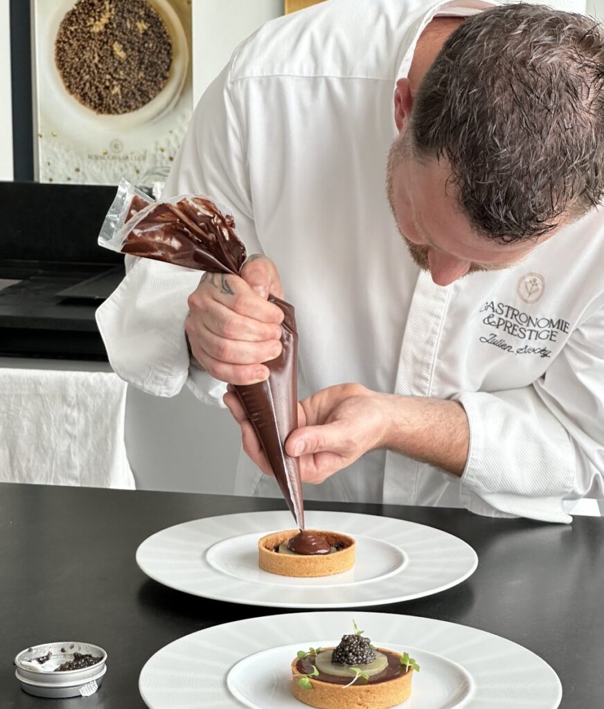 Formé dans des hauts lieux de la gastronomie – du Grand Hôtel & Spa de Gérardmer au George V, en passant par l’Atelier de Jean-Luc Rabanel –  le chef Julien Stocky s’est forgé une expertise aussi pointue que raffinée. Sur le Bassin d’Arcachon depuis plus d’une dizaine d’années, il a officié dans plusieurs établissements dont la célèbre Co(o)rniche avant de fonder Gastronomie & Prestige, son entreprise de chef à domicile. En collaboration avec Perlita, il a imaginé une expérience culinaire unique, articulée autour de techniques clés, d’astuces de pro et d’un menu pensé pour magnifier les grains d’exception de Caviar Perlita.