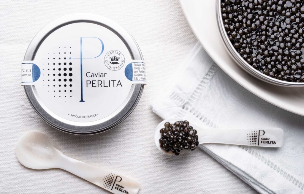 Engagée pour une aquaculture durable, traçable et transparente, Caviar Perlita arbore désormais la marque officielle « Poisson d’Aquaculture Française », ainsi que l’Indication Géographique Protégée (IGP) « Caviar d’Aquitaine », gage d’une production réalisée intégralement en France, de l’éclosion à la transformation. Ces reconnaissances attestent d’un cahier des charges strict : absence d’OGM, traçabilité ascendante et descendante totale, sécurité sanitaire renforcée et maîtrise complète des process. Une garantie forte pour les consommateurs et une reconnaissance supplémentaire du sérieux et de l’excellence de la maison Perlita.